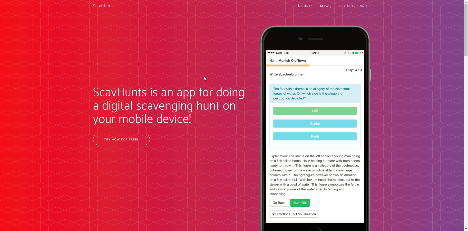 This is a browser-based scavenging hunt game for mobile devices. You can select different cities and purchase via credid card digital content. Users get a limited access token and can manage their profile.